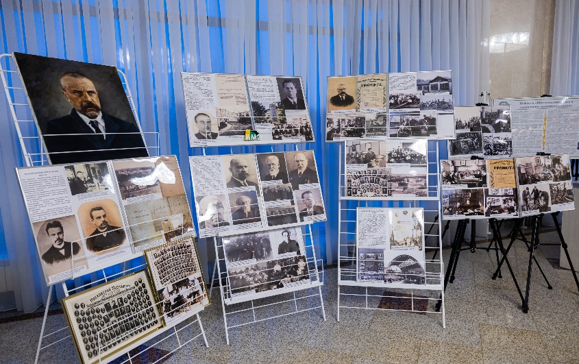 Экспозицию, показывающую современные и перспективные разработки кафедр Института, представил и.о. директора ИМЭ профессор А. Г. Арженовский, а с исторической частью выставки гостей познакомила заведующая музеем имени Горячкина Н.Ю Рябова.