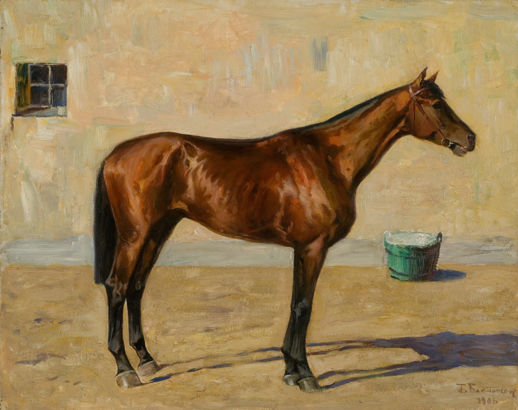 Среди немногочисленных изображений царственных особ, находящихся в музее коневодства, есть императрица Мария Фёдоровна, запечатленная знаменитым художником Сверчковым во время ее поездки в санях, запряженных парой лошадей, по набережной реки Невы в Петербурге. На его картине мы увидим сначала роскошных лошадей царского выезда, затем величественного кучера, и только потом за его могучей спиной маленькую фигурку императрицы. Николай Егорович остается верным своему призванию конного портретиста – сначала лошадь, а затем уже человек.